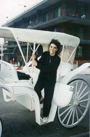 I quickly got my camera, raced downstairs, and over to the park. The horse and carriage had been used by a bridal party that was now in the park taking pictures. The sun came out as I stood there talking to the white horse. The coachman sat on a bench waiting for the bride and groom. The white horse was perhaps a metaphor for another dimension where my twin flame lives. I sat in the coach for a while as the driver took pictures.