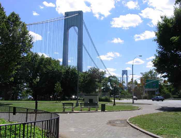 The Park faces the Verrazano Bridge which connects Brooklyn to Staten Island.