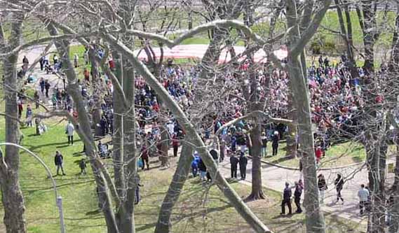 Prior to the events, I had been reading with a client and felt the presence of thousands of spirits. We walked out onto the terrace and watched as the rally began, police, media and spectators arriving.