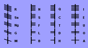 Ogham was named after the Celtic god of literature, Ogma. It was used on the edges of burial stones and boundary markers. They usually held the name of a person. Examples exist to this day.