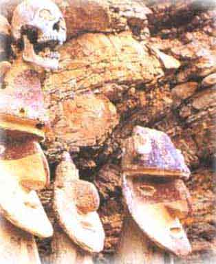 The anthropomorphous sarcophagi resemble imitations of funeral bundles provided with wooden masks typical of the Horizonte Medio, a dominant culture on the coast and highlands, also known as the Tiahuanaco-Huari or Wari culture. The "mausoleums" may be modified forms of the chullpa or pucullo, elements of funeral architecture common throughout Peru and in Tiahuanaco-Huari.