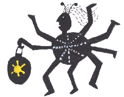 Quickly Grandmother Spider snatched up the sun, put it in the bowl of clay, and scrambled back home along one of the strands of her web.