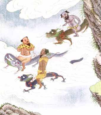 So saying, he leapt into the clouds. The others followed closely and flew towards the Heavenly Palace.