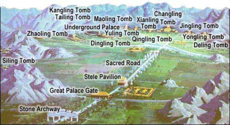 During the Ming Dynasty established by Han Chinese coming from an agricultural society in central China, people believed the existence of an after-world, where the dead "lived" a life similar to that of the living. Ming emperors, therefore, has grand mausoleums built for themselves. Qing rulers did likewise.