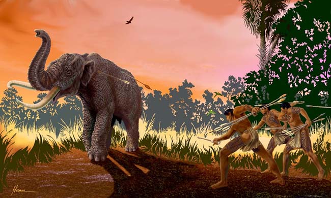 An ancient bone with a projectile point lodged within it appears to up-end - once and for all - a long-held idea of how the Americas were first populated. The rib, from a tusked beast known as a mastodon, has been dated precisely to 13,800 years ago. This places it before the so-called Clovis hunters, who many academics had argued were the North American continent's original inhabitants.