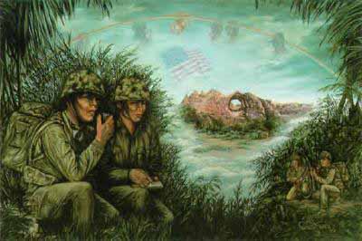 Code talkers were Native American soldiers who transmitted secret messages over radio or telephone using codes based on their native languages. The name refers chiefly to Navajo language speakers in special units in the Pacific Theater of World War II. However, the Choctaw language, Comanche language, and other languages were also used, beginning in World War I. In World War II the military (particularly the US Marines) used Navajo speakers for the first time. Their code is credited for winning WWII for the Allies.