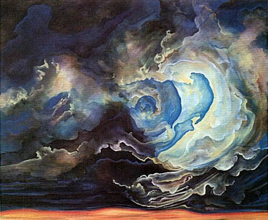 Chaos can be personified as water or by the unorganized interaction of water and fire. The transformation of chaos into order is also the transition from water to land.