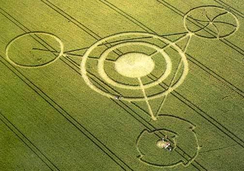 On July 17, 1991, a significant crop circle formation appeared near Barbury Castle, a prehistoric hill fort in Wiltshire, England This formation, often called "The Bicycle" or the "Barbury Castle Tetrahedron", was notable for its complex geometric design and its timing, coinciding with reports of unusual aerial phenomena and a town-wide power outage in Wroughton. The formation covered approximately 12,000 square yards and has been interpreted as having alchemical and philosophical significance, relating to the creation of the universe according to some researchers.