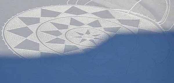 Monday December 30, 2013 just as a blogged about the fascinating snow formations (see below), what should appear in California, but a mysterious crop circle carved into a barley field just east of Salinas. The Monterey Herald reported the creation spanned nearly an acre of the field.