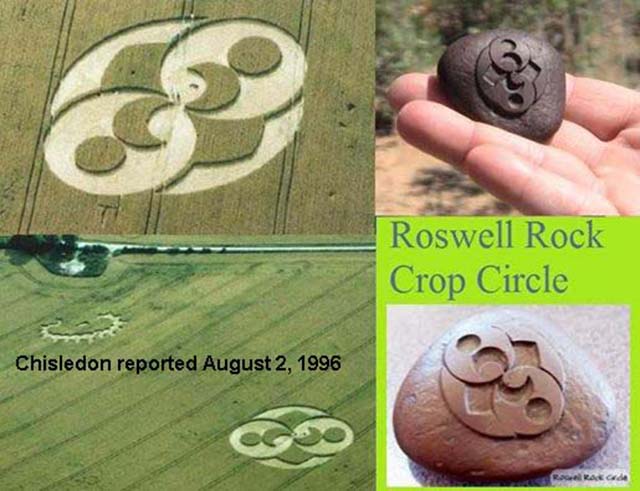The owner of the rock, Robert L. Ridge, believes he found something from the crash that was overlooked in 1947 because it was beyond the search zone. Linda Moulton Howe was interviewed by Giorgio about the pattern on the rock matching a 1996 crop formation which she believes was not created by humans.