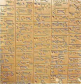 The cuneiform script is one of the earliest known forms of written expression. Created by the Sumerians from ca. the 34th century BC, cuneiform writing began as a system of pictographs. Over time, the pictorial representations became simplified and more abstract. Cuneiforms were written on clay tablets, on which symbols were drawn with a blunt reed called a stylus. The impressions left by the stylus were wedge shaped, thus giving rise to the name cuneiform ("wedge shaped").The Sumerian script was adapted for the writing of the Akkadian, Elamite, Hittite (and Luwian), Hurrian (and Urartian) languages, and it inspired the Old Persian and Ugaritic national alphabets.