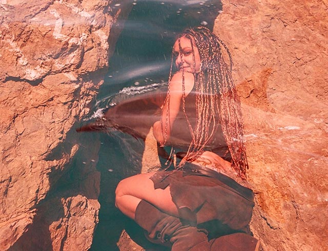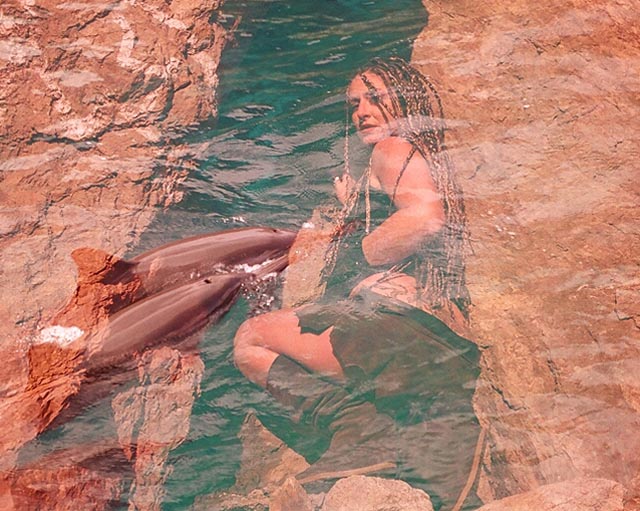 Normally when photos are superimposed, they are ruined, but as you can see from the photos above, each image of me aligns in an ethereal way over one taken in mystical Kaua'i, creating messages to be translated by the viewer. The symmetry of art and Goddess is magical and flows like the rhythm of creation from one to another.