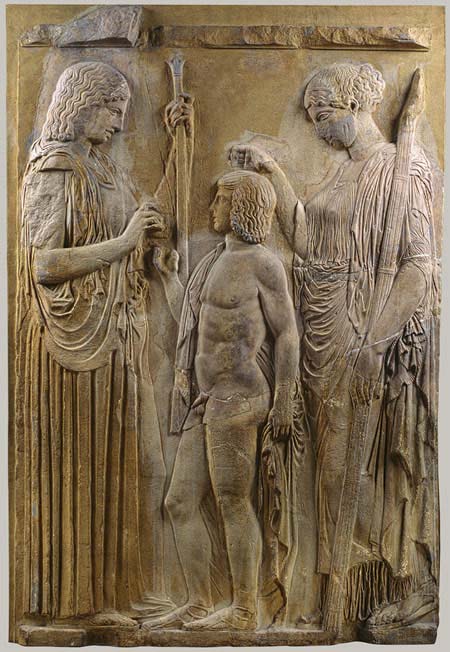 Demeter is not generally portrayed with a consort: the exception is Iasion, the youth of Crete who lay with Demeter in a thrice-ploughed field, and was sacrificed afterwards Ð by a jealous Zeus with a thunderbolt, Olympian mythography adds, but the Cretan site of the myth is a sign that the Hellenes knew this was an act of the ancient Demeter.