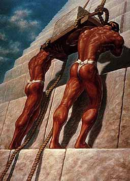 He told them that the great god Ra would damn their souls if they did not finish his pyramid.