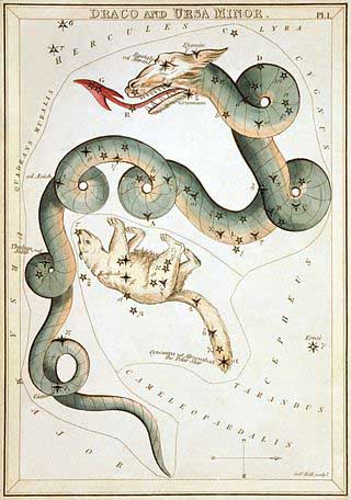 The origin of the constellation, Draco, and of most dragon lore as well, was probably the female Chaldean dragon Tiamat, the sea serpent who existed even before the sea and sky had been divided from each other, the dragon of chaos.