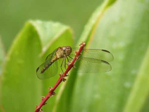 A dragonfly is an insect characterized by large multifaceted eyes, two pairs of strong transparent wings, and an elongated body. Dragonflies typically eat mosquitoes, midges and other small insects like flies, bees, and butterflies. They are usually found around lakes, ponds, streams, and wetlands because their larvae, known as "nymphs", are aquatic. The oldest known species of dragonfly is the 320 million year old. Read more ...