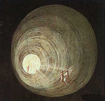You experience yourself moving through a tunnel into a white light or returning from the light. This may be accompanied by the sound of whooshing water. You may meet someone, or meet yourself, at the end of the tunnel, much like a Near Death Experience. While moving through the tunnel, you may move alone or see others. You can fly quickly or slowly. You can experience emotions with this dream journey, which often brings transformational messages.