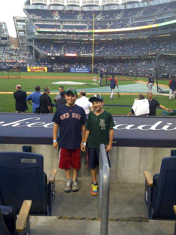The boys sat in the 3rd row, behind the 3rd base dugout and were on TV 3 times.