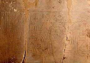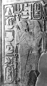 Fragment from Karnak pillar with King and Horus