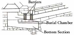 The vaulted entrance corridor was too narrow for a large sarcophagus and the blocks used to line the burial chamber, though another entrance was hidden farther south, beneath a sloping passage to the tomb of an unknown princess. This shaft is about 16 meters (52 feet) deep, and a corridor at the bottom leads to an entrance hall below the formal entrance shaft.