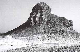 In building this pyramid Senusret II's archetects took advantage of a natural stump of yellow limestone that they cut down into four steps to serve as the pyramid's base core. Mudbrick was used to build the upper part of the core, and as several pyramids before, wings were built out from this core and cross walls within the wings were built to form a framework.