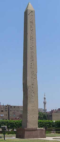 Senusret I dispatched several quarrying expeditions to the Sinai and Wadi Hammamat and built numerous shrines and temples throughout Egypt and Nubia during his long reign. He rebuilt the important temple of Re-Atum in Heliopolis which was the centre of the sun cult. He erected 2 red granite obelisks there to celebrate his Year 30 Heb Sed Jubilee. One of the obelisks still remains and is the oldest standing obelisk in Egypt. It is now in the Al-Masalla (Obelisk in Arabic) area of Al-Matariyyah district near the Ain Shams district (Heliopolis). It is 67 feet tall and weighs 120 tons or 240,000 pounds.