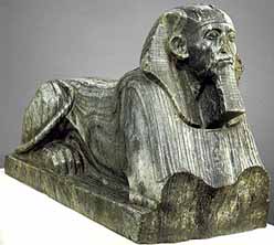 Amenemhet III is also attested to by an unusual set of statues probably of Amenemhet III and Senusret III that shows the two in archaic priestly dress and offering fish, lotus flowers and geese. These statues are very naturalistic. but show the king in the guise of a Nile god.. There was also a set of sphinxes that were once thought to have been attributable to the later Hyksos rulers, but are now believed to have been built on the orders of Amenemhet III. Originally all these statues were discovered reused in the Third Intermediate Period temples at Tanis. We also know of an inscription by the king at Koptos(Coptos).