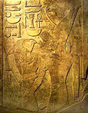 Senusret I embraces the creator god, Ptah at Karnak