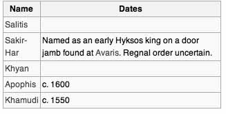 Salitis was the first king of the Hyksos Fifteenth dynasty of Egypt, who began to rule Egypt around 1648 BC. The precise dates of his rule are unknown. Northern Egypt was controlled by Hyksos rulers throughout the Dynasty. The Hyksos were people of Semitic origin who were thought to have invaded Egypt through the Sinai Peninsula and settled in the Delta. Other scholars regard this as propaganda and instead consider that the Hyksos were elements of the local Semitic population of Lower Egypt who assumed control of lower Egypt when the 13th dynasty of Egypt collapsed. The Hyksos controlled all the Nile Delta and Northern Egypt.