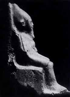 Other than the various inscribed stone vessels, only two other artifacts have been unearthed that bear the king's name. One of these is a small ivory vessel from the Saqqara area, but the other is a small statue of considerable significance, both to the king's history and especially Egyptian art. The statuette is made of alabaster, depicting the king on his throne and wearing the close fitting robe associated with the Sed-festival. Upon his head rests the White Crown of Lower Egypt. This crude stone statuette of unknown provenance, now in the Georges Michailides Collection, represents the earliest complete and identifiable example of three-dimensional royal statuary from Egypt.