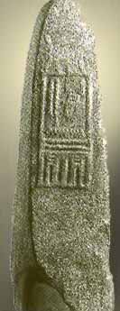 Also two large tomb stelae made of dark grey granite were found at his burial site. Their shape is unusual, because it makes them look unfinished and rough. Egyptologists suspect that this was done deliberately, but the meaning behind this is unknown. A cylinder seal of unknown provenance shows Peribsen's name inside a cartouche and gives the epithet Merj-netjeru (beloved of the gods). This arrangement leads Egyptologists and archaeologists to the conclusion that the seal must be of a much later date, because the royal cartouche was not yet in use during Peribsen's lifetime. Another seal of the same material shows Peribsen's name without a cartouche and with the royal title Nisut-Bity ("king of Lower- and Upper Egypt").