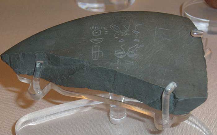 In the tomb of Peribsen at Abydos clay seals were found which show the first complete sentence in Egyptian history. The inscription says: "The golden one/He of Ombos hath unified/handed over the two realms for/to his son, the king of Lower and Upper Egypt, Peribsen". The title "The golden one", also read as "He of Ombos", is considered by Egyptologists to be a religious form of address to the deity Seth.