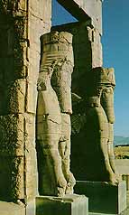 The Gate of Xerxes at Perespolis shows that the Winged Lion was placed at the corner of one entrance. When you stood in front of the gate you saw a lion with four legs and when you were inside the gate you also saw a lion with four legs.
