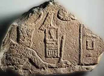 Khaba's name, typically displayed within a serekh rather than the more typical cartouche form established by the end of this dynasty, was written using the sign of a rising sun that had the sound value of kha, and a Saddle-billed Stork that had the sound value of ba.