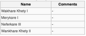 Known rulers in the Ninth Dynasty are as follows (dates are uncertain):