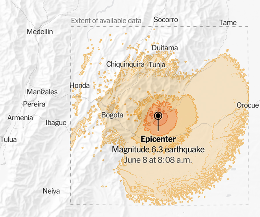 Map: 6.3-Magnitude Earthquake Strikes Colombia June 8 at 8:08 New York Times - June 8, 2025