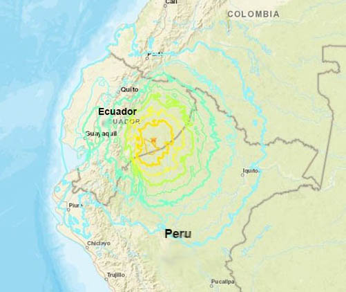 The temblor happened at 8:08 a.m. Colombia time about 72 miles east of Bogota, Colombia, data from the agency shows. As seismologists review available data, they may revise the earthquake's reported magnitude. Additional information collected about the earthquake may also prompt U.S.G.S. scientists to update the shake-severity map.