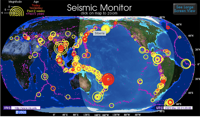 Friday March 28, 2025 - Two Major Earthquakes - On Opposite Sides of the Planet