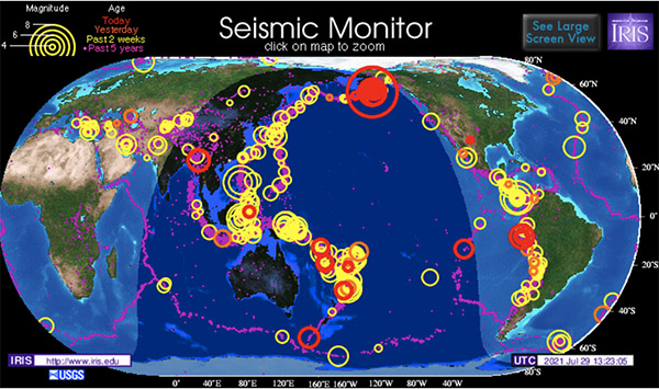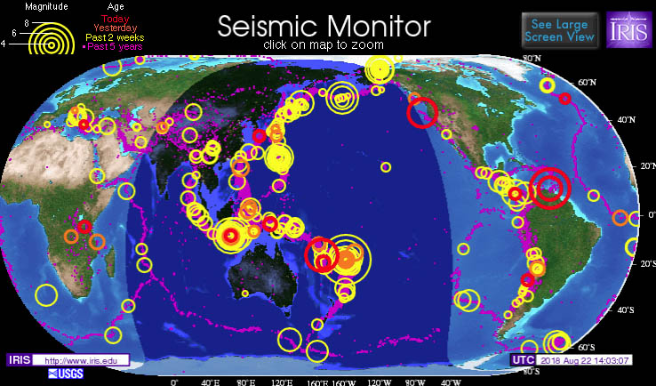 It seems the Pacific Plate is on the move again - north, south, east, and west. Its activity should not be ignored - just monitored when you see a big red circle on the map at the top of this page.