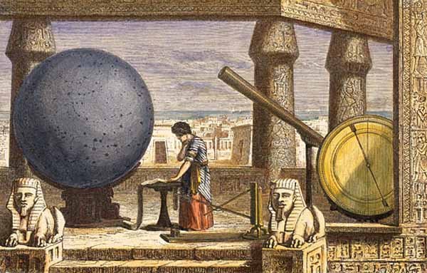 Ancient Egypt -- Nearly all we know about ancient Egyptian civilization's knowledge of astronomy comes to us from tomb paintings, various temple inscriptions, and a handful of papyrus documents such as the Rhind Papyrus. Unfortunately, the Great Library in Alexandria was burned during the time of Cleopatra and Julius Caesar. Later burnings in AD 390 and AD 640 destroyed an estimated 400,000 books on Egyptian secular literature, mathematics, medicine, and astronomy. All that survives is fragments that some scholars see as merely the faded ghosts of Egyptian intellectual legacy.