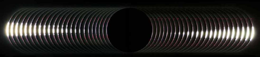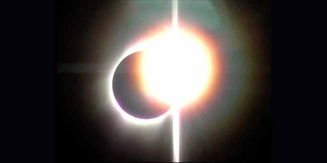 Pyramid Texts: "The eclipse represents the breaking of the Egg and Splitting the Iron." The iron is the rod, the magnetic poles, north/south, duality of experience created by electromagnetic energy, the aura, needed to create a physical reality and the illusion of linear time. The Two 'Diamond Ring Effects' crowned the eclipsed shadow on the head of Re.