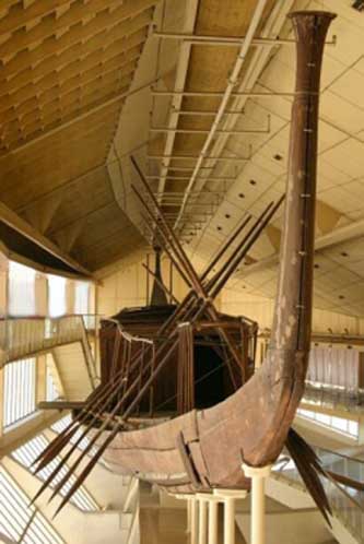The history and function of the ship are not precisely known. It is of the type known as a "solar barge", a ritual vessel to carry the resurrected king with the sun god Ra across the heavens. However, it bears some signs of having been used in water, and it is possible that the ship was either a funerary "barge" used to carry the king's embalmed body from Memphis to Giza, or even that Khufu himself used it as a "pilgrimage ship" to visit holy places and that it was then buried for him to use in the afterlife. The Khufu ship has been on display to the public in a specially built museum at the Giza pyramid complex since 1982.