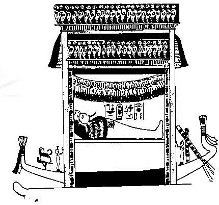 The hidden river/road of Ament is the burial way in Underworld. The body of the deceased Pharaoh travels down the river of Ament (which has no water) in his funeral barque. The Pharaoh makes his way by the words of Isis and Shemsu. The utterances of this great god act as magical protection and perform the slaughter of Apep, who is the serpent/womb in the Duat Underworld in his circle of windings in the sky. "I purify myself. I assume my pure throne, which is in the sky. I will endure. I assume my pure seat in the bow of the Barque of Ra. It is the sailors who row Ra and it is they who will convey me round the horizon." ("What Is In The Duat /Underworld" - Utterance 407). Many important Egyptian gods are seen in boats during ritual processions. Such boats symbolize important sacred time periods.