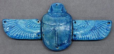 A 3,000-year-old skeleton from a conquered territory of ancient Egypt is now the earliest known complete example of a person with malignant cancer spreading from an organ, findings that could help reveal insights on the evolution of the disease, researchers say. Here, the skeleton (called Skeleton Sk244-8) in its original burial position in a tomb in northern Sudan in northeastern Africa, with a blue-glazed amulet (inset) found buried alongside him; the amulet shows the Egyptian god Bes depicted on the reverse side.