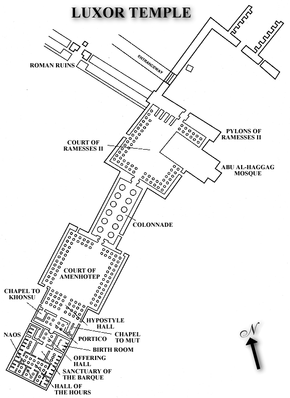 Luxor Temple is a large Ancient Egyptian temple complex located on the east bank of the Nile River in the city today known as Luxor (ancient Thebes) and was constructed approximately 1400 BCE. In the Egyptian language it is known as ipet resyt, "the southern sanctuary". In Luxor there are several great temples on the east and west banks. Four of the major mortuary temples visited by early travelers and tourists include the Temple of Seti I at Gurnah, the Temple of Hatshepsut at Deir el Bahri, the Temple of Ramesses II (a.k.a. Ramesseum), and the Temple of Ramesses III at Medinet Habu; and the two primary cults temples on the east bank are known as the Karnak and Luxor. Unlike the other temples in Thebes, Luxor temple is not dedicated to a cult god or a deified version of the king in death. Instead Luxor temple is dedicated to the rejuvenation of kingship; it may have been where many of the kings of Egypt were crowned in reality or conceptually (as in the case of Alexander the Great who claimed he was crowned at Luxor but may never have traveled south of Memphis, near modern Cairo.) Read More ...