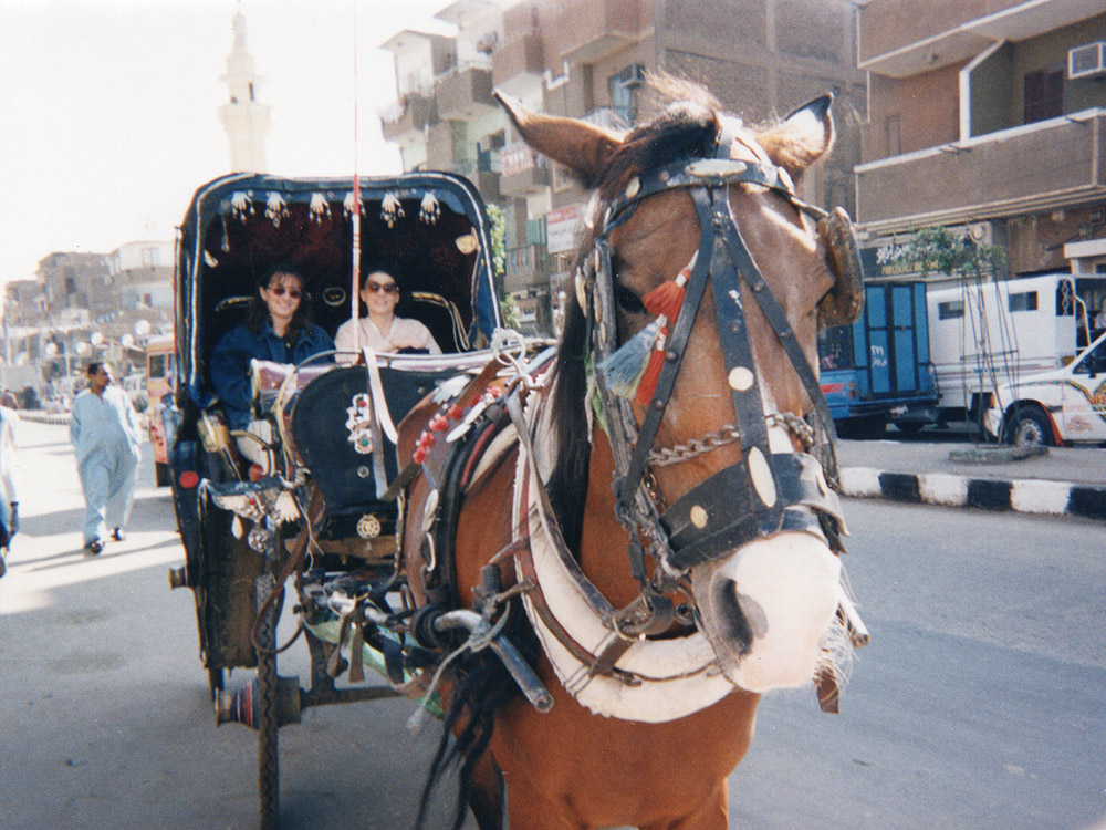 In Luxor, hailing a horse and carriage is like hailing a cab in New York City. You walk along the street where there are many readily available. For the equivalent of $10.00, 374 Egyptian pounds, Leslie and I were able to see the sights of Luxor for two hours.