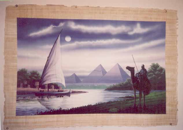 After breakfast, I met a man in one of the hotel stores who took me to a papyrus factory where I bought a papyrus of the pyramids and the Nile.