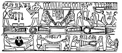 Egyptian Goldsmiths Washing, Melting and Weighing Gold Beni Hasan, 1900 B.C.