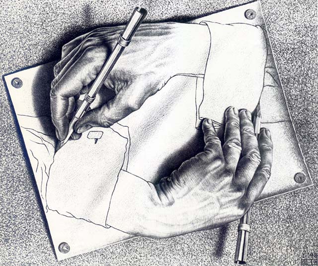 Drawing Hands, a work in which two hands are shown, each drawing the other.