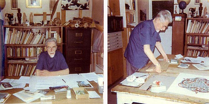He worked primarily in the media of lithographs and woodcuts, though the few mezzotints he made are considered to be masterpieces of the technique. In his graphic art, he portrayed mathematical relationships among shapes, figures and space. Additionally, he explored interlocking figures using black and white to enhance different dimensions.